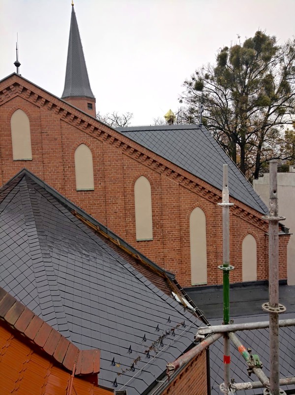 27 lutego 2019 roku przystąpiono do montażu łupka na dachu kościoła.