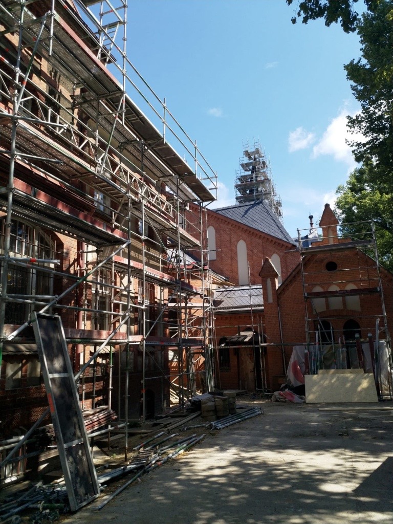 3 lipca 2019 r. rozpoczęto montaż rusztowania na wieży kościoła (40 m)