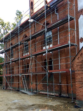 Przygotowanie do czyszczenia ściany pólnocnej kościoła